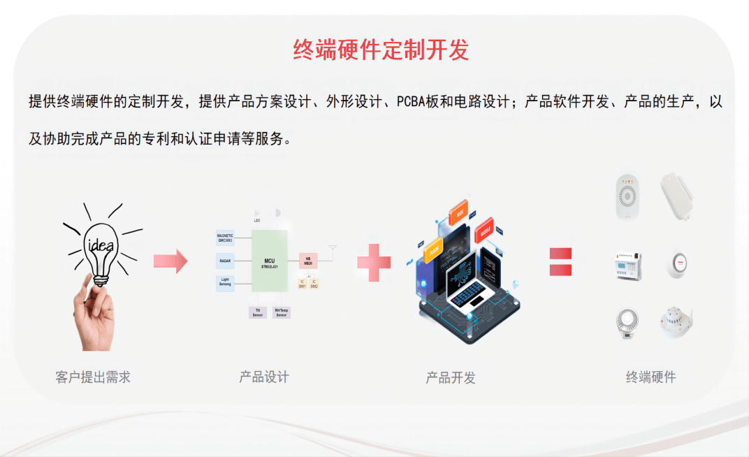 狗子28科技提供应用广泛的低成本、低功耗的物联网模块、终端、通用物联网云平台、行业应用平台以及手机/微信应用等定制开发服务,解决没有任何开发技术基础的企业制造难的问题。我们为您提供项目全生命周期的技术指导,从方案评估到样机开发,小批量试产直至批量量产。 √  支持硬件电路、模块、终端、网关定制开发 √  支持物联网平台、应用软件定制开发 √  支持联网产品认证服务 √  支持现有产品OEM